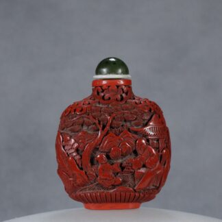 O38 A carved cinnabar lacquer “Literati at a table” snuff bottle