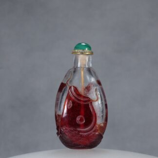 G66 A ruby red overlay “Leaping carp” snuff bottle