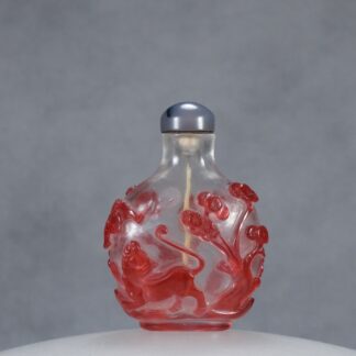 G64 A red overlay “Cat fighting the bat” snuff bottle