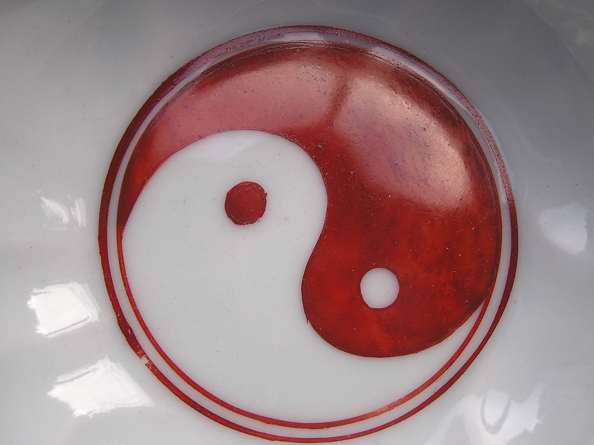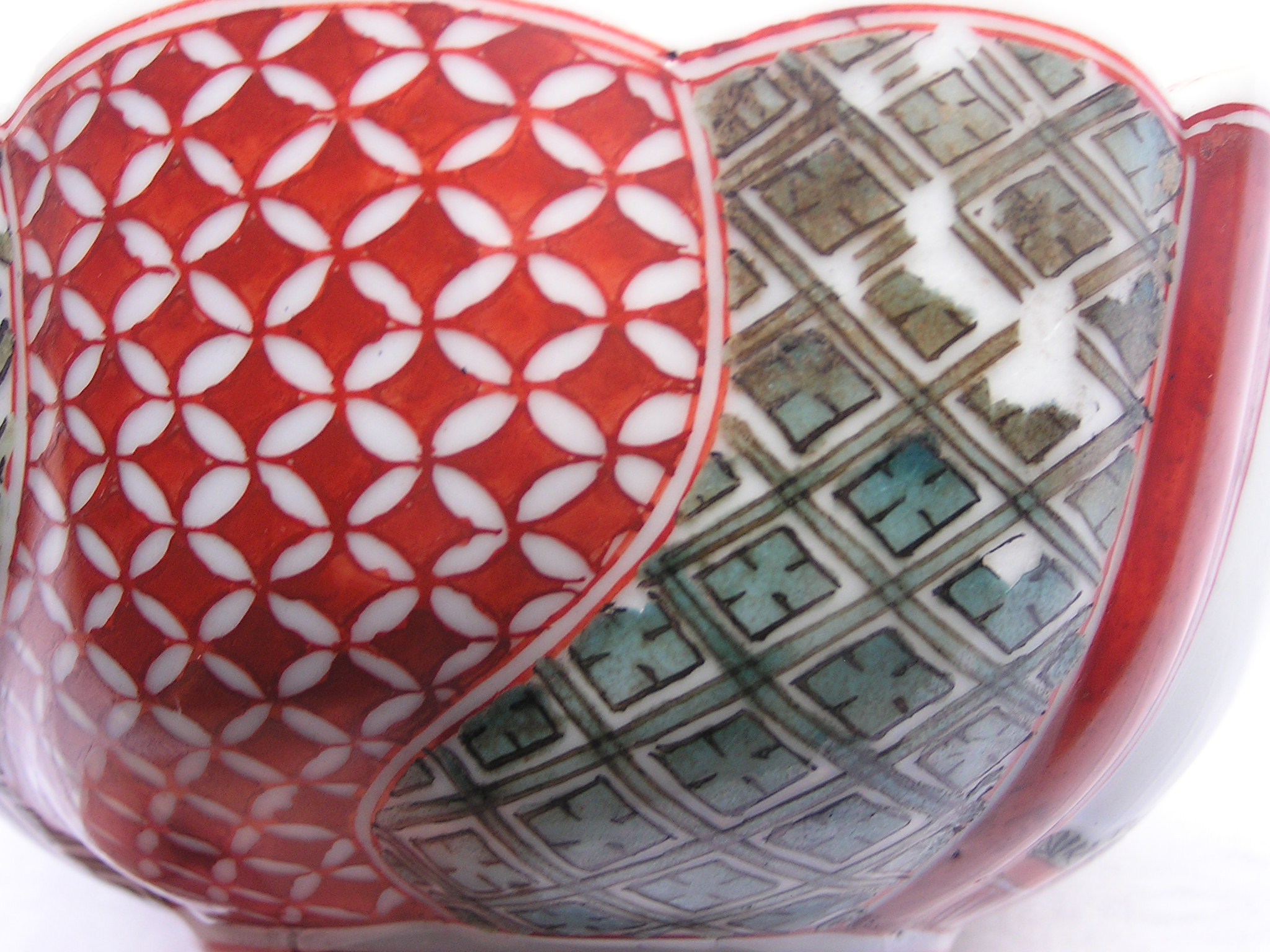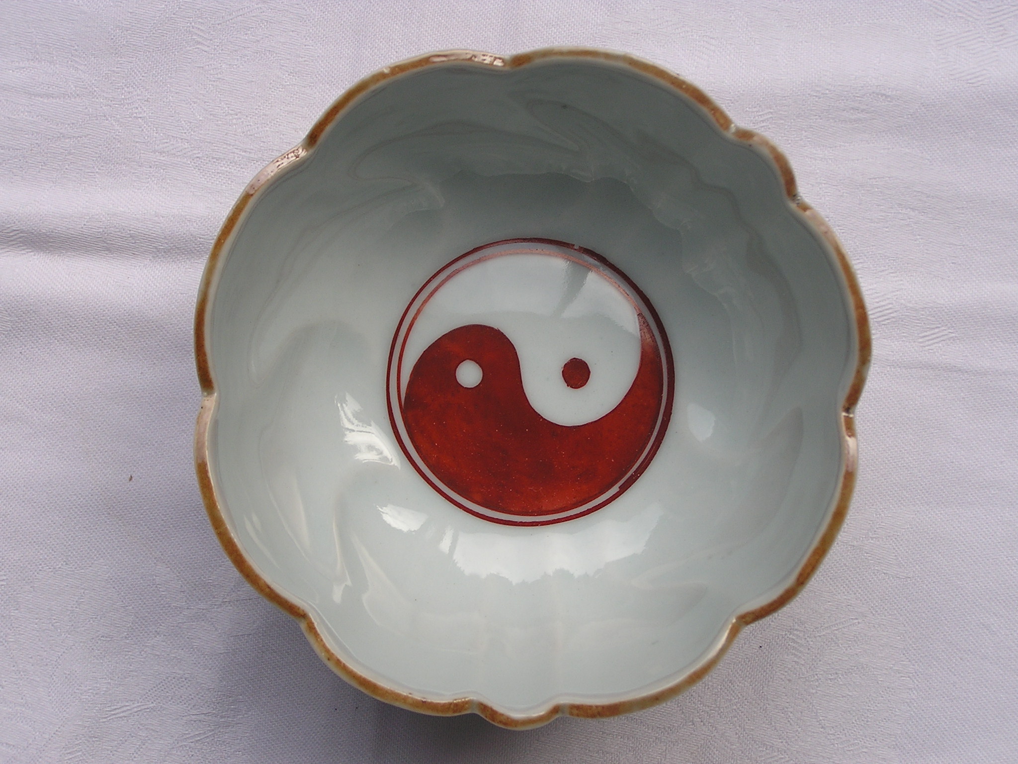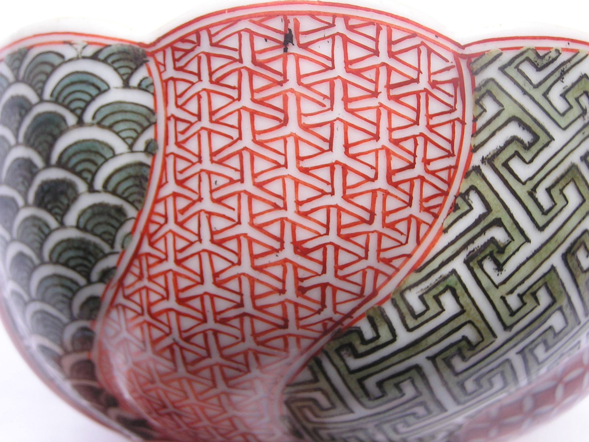 Imari bowl from the mid-Edo period. In the well, the yin/yang symbol, illustrating the concept of interdependence between opposing forces; On the outside, playing children and abstract patterns.